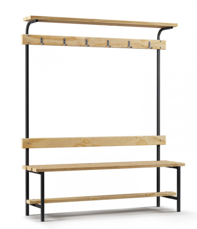 Скамейка с вешалкой для раздевалки с верхней полкой (L=1500) дерево
