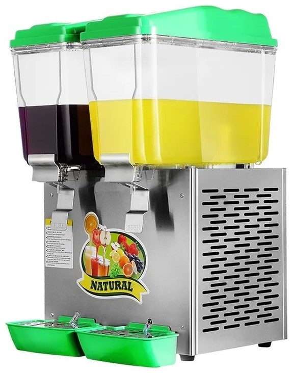 Сокоохладитель JD-162A является популярным барным оборудованием предназначение которого заключается в охлаждении разнообразных не газированных напитков, питьевой воды и напитков разведенных из концентрата. Состоит из 2-х контейнеров из прозрачного пластика для жидкости по 16 литров, в котором и происходит охлаждение за счет холодильного агрегата с компрессором, что находится в корпусе сокоохладителя. Напряжение: 220 В, 50 Гц. Мощность: 0,235 кВт. Размер: 420x450x680мм. Вес: 22 кг. Хладагент: R290. Температрурный режим 3-7°С. Материал корпуса: нерж.сталь/пластик.
