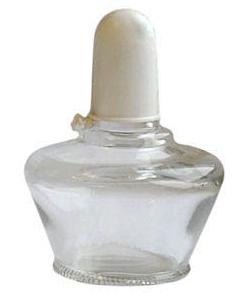 Спиртовка изготовлена из стекла, снабжена держателем фитиля и колпачком для гашения пламени.