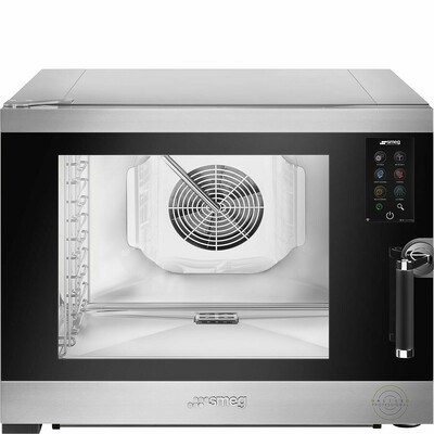 4 уровня для противней 600х400 / 5 уровней GN1/1, ШхГхВ: 790х898х635 мм, 380В, 8 кВт, технология SteamArt (100% пар, шаг -5%, бойлер + инжектор), таймер: 1 минута — 12 ч., 12 ч. — 59 минут, бесконечно; термостат: 30-270°C; LED подсветка; Touch screen дисплей 7″ (русиф.); 512 программ по 8 шагов в каждой; 100 предустановленных рецептов; мультизонный термощуп, приготовление с ΔT°; регулируемая скорость вентилятора; автоматическая мойка WashArt (3 программы); контейнер для моющего средства.