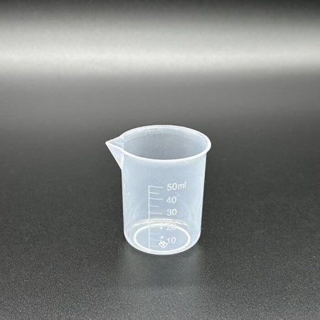 Стакан 50 мл с носиком и шкалой, ПП предназначен для отмеривания ориентировочного объема веществ и иных процедур с нелетучими жидкостями.