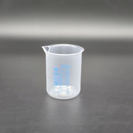 Стакан низкий 100 мл с носиком и шкалой, ПП предназначен для отмеривания ориентировочного объема веществ и иных процедур с нелетучими жидкостями.