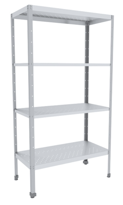 Ножки стеллажа снабжены регулирующими опорами, позволяющие компенсировать неровности пола при установке.