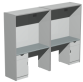 Состоит из 2х модулей. Материал ЛДСП. Топ и боковины - 32/2 мм. Задняя стенка, детали 16 /0,4 мм. Столешница - постформинг 38/2 мм. Цвет по согласованию