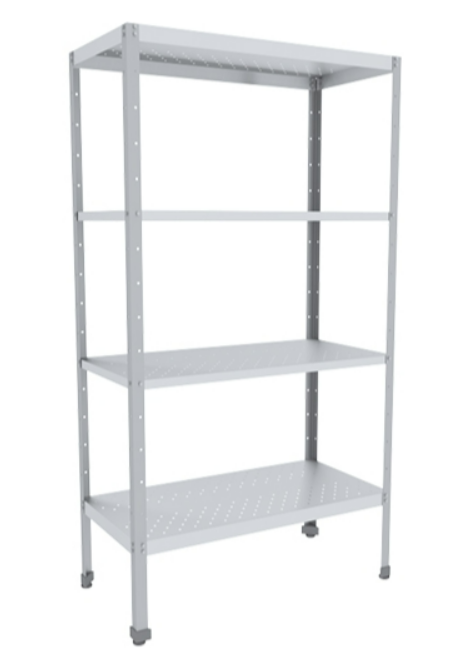 Полки перфорированные из нержавеющей марки стали AISI 430. Стойки стеллажа имеют крепежные отверстия для установки полок на любой необходимой высоте.