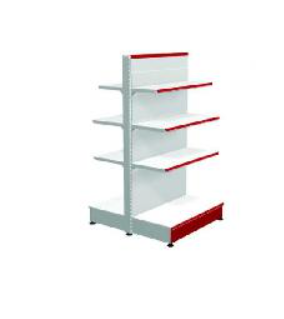 Стеллаж островной в стандартной комплектации имеет базу 1000 мм, 4 полки по 400 мм, 4 полки по 300 мм (при необходимости можно использовать любую комбинацию полок 500, 400 или 300 мм.). Допустимая нагрузка на полку до 60 кг. Стеллажи могут комплектоваться пластиковыми борт ценниками, а также фризом с подсветкой. Размеры стеллажа: 900х1000х2350мм. (Состоит из одной стойки и одной основы, без цоколя и крышки)