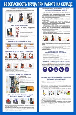 Стенд Безопасность труда при работе на складе 800 х 1200 мм пластик 3 мм