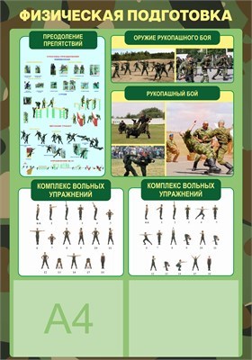 Стенд "Физическая подготовка" 700 х 1000 пластик 3 мм, карманы А4-2шт.