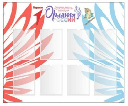 СТЕНД "ОРЛЯТА РОССИИ " РАЗМЕР 1200 Х 1000 ПЛАСТИК 3 ММ КАРМАН А4 8 ШТ