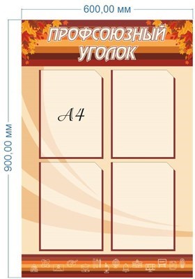 Стенд Профсоюзный уголок пластик 3мм размер 600х900 мм с карманами А4-4 шт