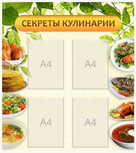 Стенд Секреты кулинарии 800х900 мм пластик 3мм с карманами А4-4шт