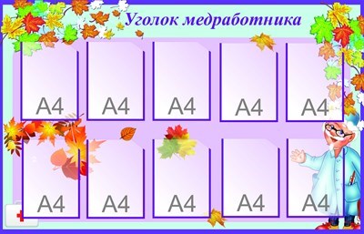 Стенд Уголок медработника 1400 х 900 пластик 3 мм карманы А4-10шт