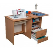 Стол оснащен секционными и выдвижными ящиками, которые обеспечивают удобное хранение различных аксессуаров для шитья, таких как иглы, ножницы, линейки, нитки и другие необходимые мелочи. Ящики легко открываются и закрываются, благодаря чему вы можете быстро найти нужные вещи.