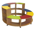 Стол-трансформер (8 сегментов). Выполнен из ламинированной ДСП (ЛДСП) 16 мм, обрамлены кантом ПВХ 2 мм, все углы закруглены. Боковые элементы имеют полимерные подпятники, предотвращающие повреждение напольных покрытий.