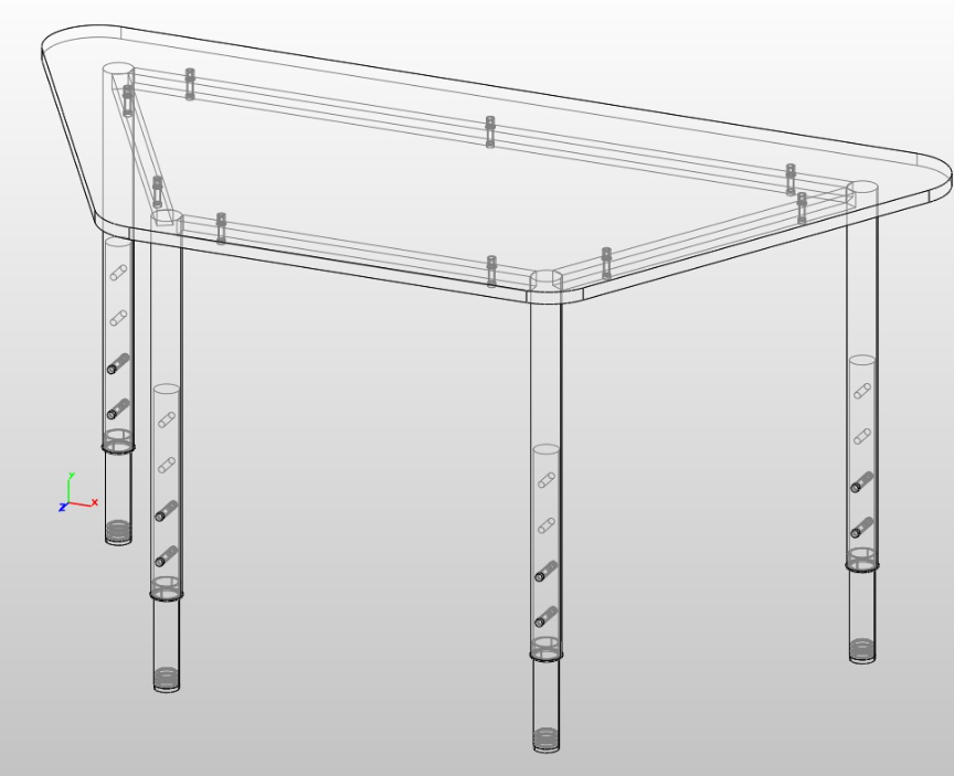 Столешница выполнена из ЛДСП 16мм с кромкой ПВХ 2мм. Не регулируемые по высоте опоры из трубы диаметром 32мм, обвязанные по периметру трубой 20х20мм.