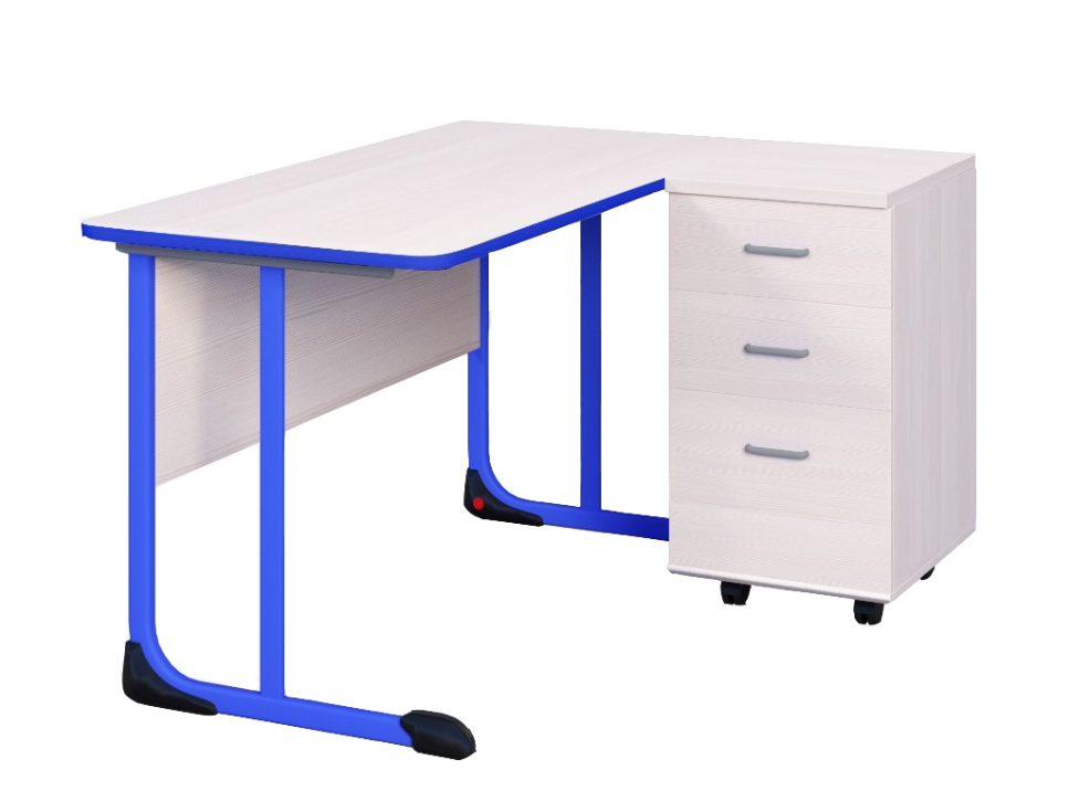 Размер: 1350*650*750 мм. Каркас стола - металлический сборно-разборный.. Крышка стола и тумбы ЛДСП не менее 22 мм, кромка антивандальная полиуретан. Царга из ЛДСП толщиной 16мм. Размер тумбы: 400*500*750 мм.