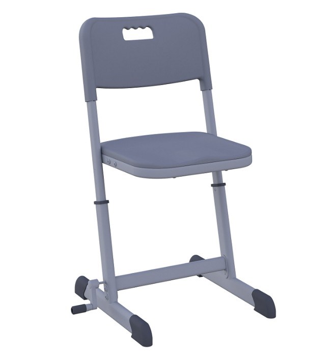 Выполнен из металлического основания и пластиковых спинки и сидушки, стул регулируется по высоте. Цвет пластика серо- белый. Сиденье оснащено анатомическим выжимом. Сиденье перфорированное и имеет эффект "воздушной подушки". Металлокаркас из плоскоовальной трубы.