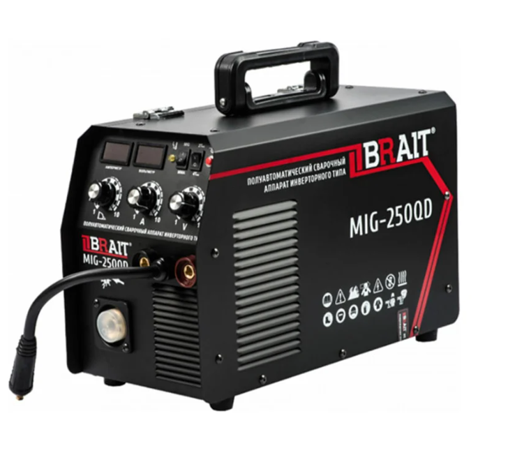 BRAIT MIG-250QD идеален для ремонта автомобилей, сварки металлоконструкций, создания каркасов и других работ по металлу. Благодаря простоте эксплуатации и надежности, этот аппарат станет незаменимым помощником как для профессионалов, так и для домашних мастеров.