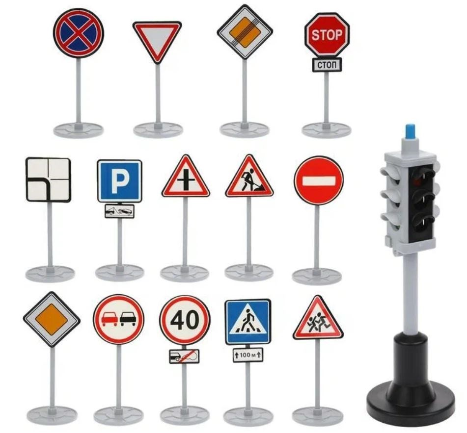Набор содержит светофор механический и 14 дорожных знаков, высотой 15см. Подходит к серии "Детский сад". 9 знаков поставляется в разобранном состоянии. Наклейки изготовлены из высококачественной пленки, допускающей возможность переклеивания в случае неудачной попытки. При нажатии кнопки светофора сигналы переключаются.