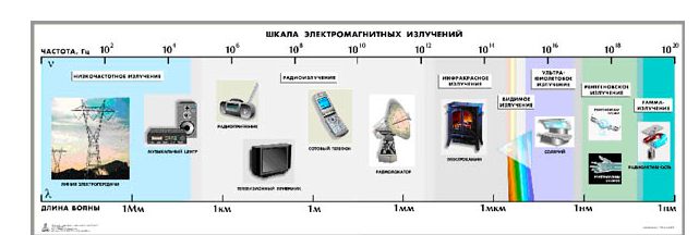 Таблица «Шкала электромагнитных излучений» для оформления кабинета физики
