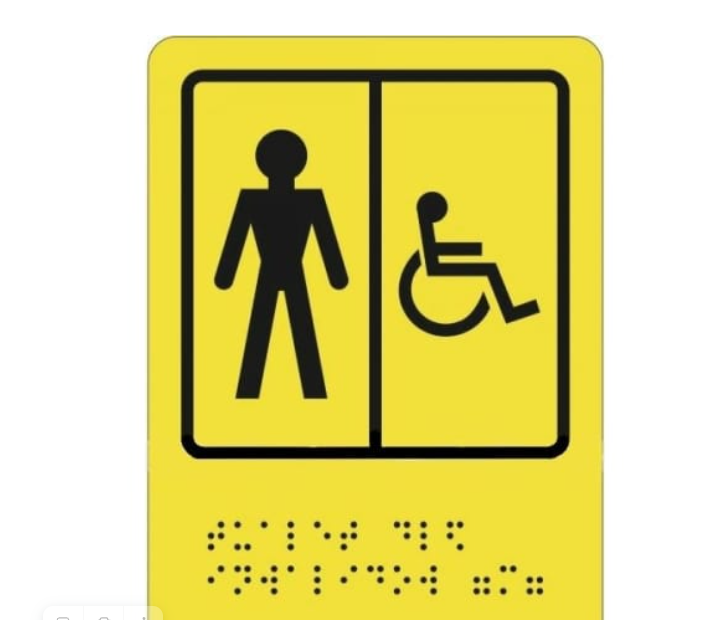 Пиктограмма тактильная с шрифтом Брайля выполнена из пластика ПВХ толщиной 3 мм, на которую кроме тактильного рисунка нанесена дублирующая иконку надпись шрифтом Брайля.