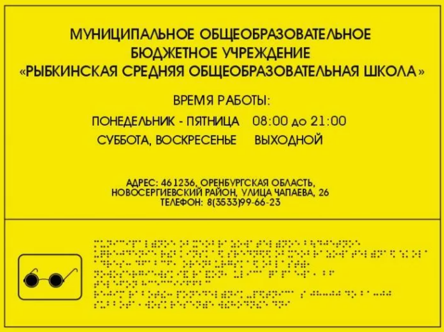 Тактильная вывеска Режим работы 300х600 мм. (ПВХ)