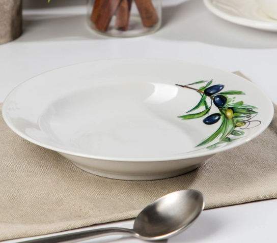 Тарелка глубокая «Оливки», 225 мл, d=20 см, цвет белый, рисунок микс, фарфор