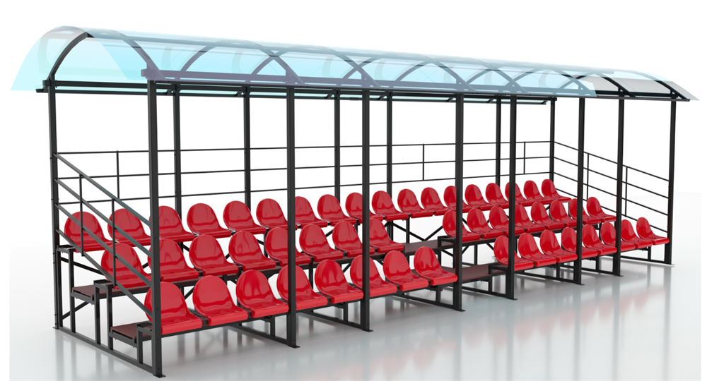 Трибуна сборно-разборная 3-х рядная на 50 мест (с навесом из поликарбоната)