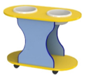ЛДСП толщиной 16 мм, противоударная кромка ПВХ 2 и 0,4 мм. Оснащен поворотными колесами. Тазики в комплекте.