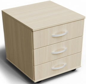 Топ ЛДСП 22мм, противоударнойая кромка ПВХ толщиной 2 мм, Все детали корпуса (боковины, задняя стенка) изготовлены из ЛДСП 16 мм, кромка 2 мм.В качестве крепежной фурнитуры применяется эксцентриковая стяжка. Тумба имеет три выдвижных ящика.Ящики оснащаются накладными ручками типа «скоба», роликовые направляющие.