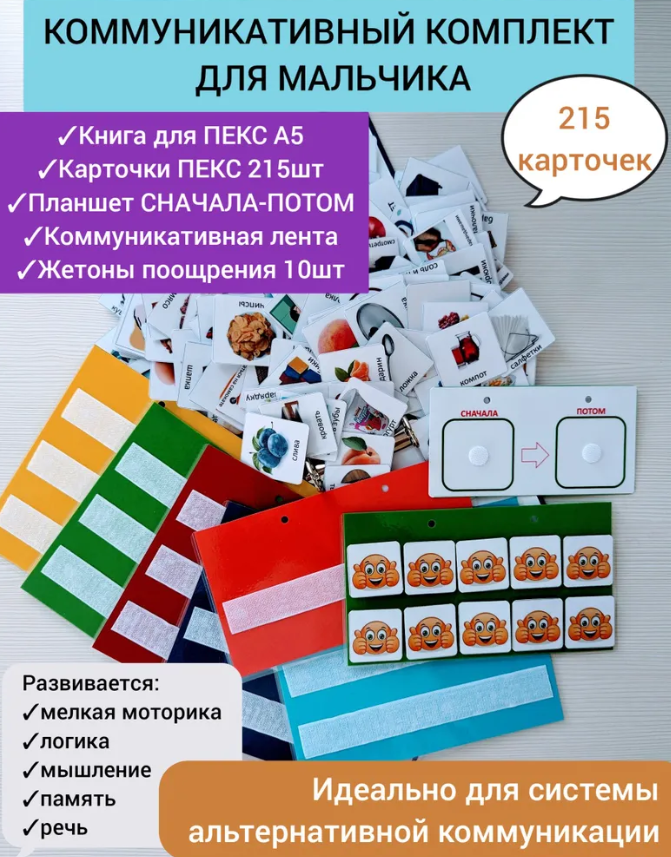 Учебное оборудование коммуникативный комплект А5 с карточками ПЕКС (100шт) " Базовые+Действия" для мальчика