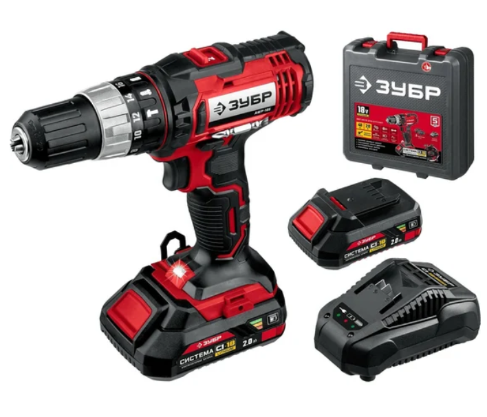 Ударная дрель-шуруповер ЗУБР 18В, 2 АКБ