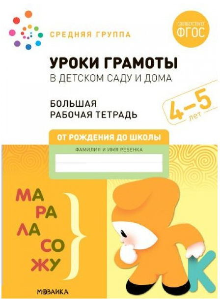 Уроки грамоты в детском саду и дома. Большая рабочая тетрадь. Средняя группа. 4 - 5 лет