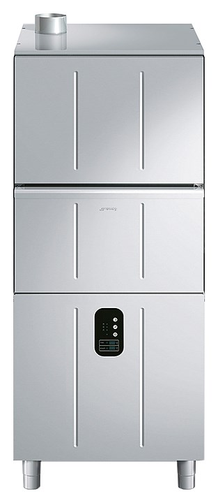 (ШхГхВ) 680х750х1725 (2000) мм, 380В, 9,1 кВт, электронный тип управления, размер кассет (мм) 570х570, производительность 30/15/устанавливаемая пользователем, 3 программы, моющие рукава 3+1 шт. из нерж. стали AISI 304, ополаскивающие рукава из нерж. стали, двойные фильтры из нерж стали для сбора отходов, цельнотянутый моечный бак с закругленными углами, сбалансированные дверцы, визуализированный контроль температуры, дозатор ополаскивающего средства, дозатор моющего средства, встроенная сливная помпа, система ополаскивания с атмосферным бойлером и насосом ополаскивания, система эвакуации пара после цикла мойки для благоприятной рабочей среды, позволяет мыть противни и другие предметы шириной 650 мм; в комплекте 2 кассеты: WH00S02 — кассета для половников и ножей; WB5757G01 — универсальная кассета с плоским дном.