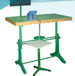 Комплект: слесарными тисками, столярными тисками (струбцина столярная), защитным экраном (размер 416±16х250+75), табуретом (ножки табурета оснащены «пяточками» из «мягкого» полиэтилена высокого давления, за счет этого табурет удобнее в эксплуатации).