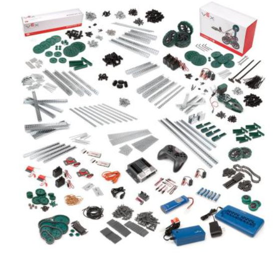 В состав набора входит: Набор Clawbot, контроллер Cortex® ARM®, VEXnet Джойстик и VEXnet Ключ 2.0, аккумуляторные батареи для робота и джойстика и зарядные устройства для них, Набор Мехатроника Add-On Kit (более 100 компонентов, в т.ч. 1 мотор, 2 датчика, колеса для всенаправленного движения, гусеничные траки, цепные передачи, звездочки, зубчатые рейки и т. д.).