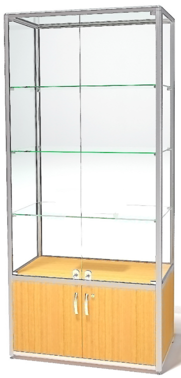 ВДА-02/09 профиль - по каталогу RAL или анодированный, заполнение - ДСП ламинированная (цвет - по выбору). габариты 900х400х2000 мм. Распашные стеклянные дверки с замками. Тарник - дверки распашные с замками. 3 cтеклянные полки толщиной 6 мм. Возможно изготовление витрин по индивидуальным размерам.