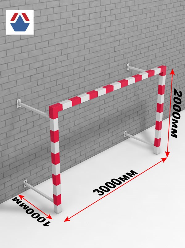 Ворота гандбол - мини-футбол 3х2х1 стальные пристенные представляют собой сборно-разборную конструкцию, состоящую из правой, левой, верхней штанг и четырех элементов крепления к стене. Штанги гандбольных ворот стальных выполнены из стальной профильной трубы 80х80х3 мм, крепления к стене - из профильной трубы 30х30х1,5 мм.