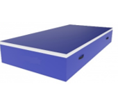 Материал наполнителя: ППУ плотностью 40 кг/м3. Для компенсации избыточного давления при приземлении спортсмена и смягчения падения в конструкции предусмотрены вставки из сетки. По бокам зона приземления для прыжков в высоту оснащена ручками для переноски.