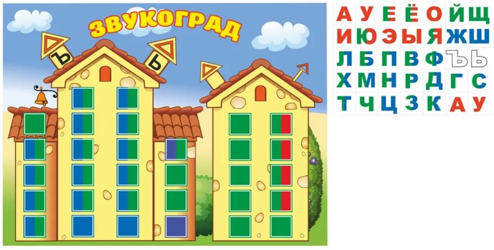 ЗВУКОГРАД обучающий магнитный стенд для детского сада 70х50см + комплект букв (горизонтальный)